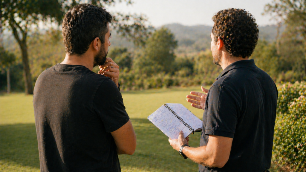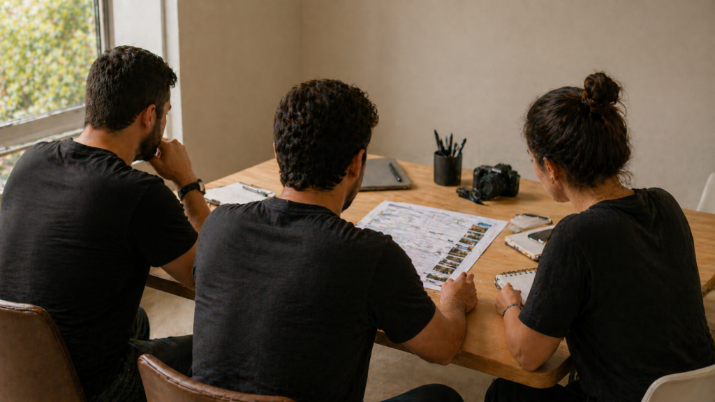 O estilo visual do vídeo. Se o videógrafo trabalha com paleta mais fria, o piloto de drone precisa calibrar a câmera para harmonizar com esse estilo. Se o fotógrafo tem preferência por luz específica para os primeiros planos, o piloto precisa saber para não cruzar os ângulos nos momentos críticos.